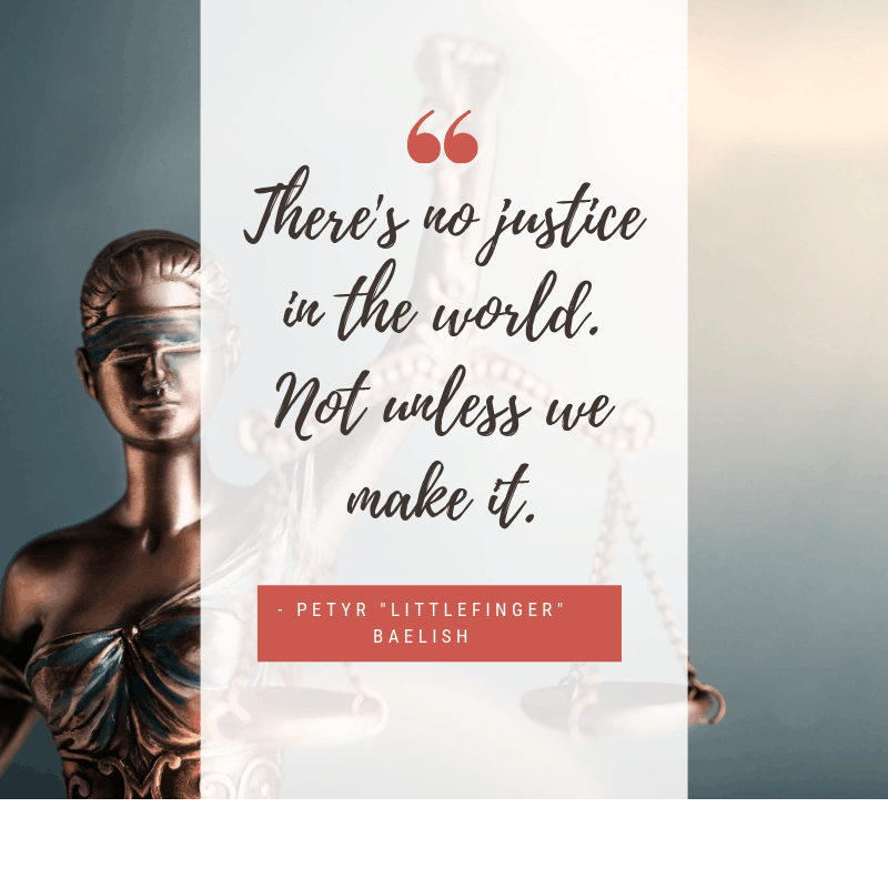 A pessimist (or a realist, depending how you look at it) may say there is no justice in the world. So it’s up to the monarch to ensure that the laws are just and that the weak are protected. This is not always easy as justice can look different to different people. It is up to the monarch to ensure that the evil are punished and victims are compensated.